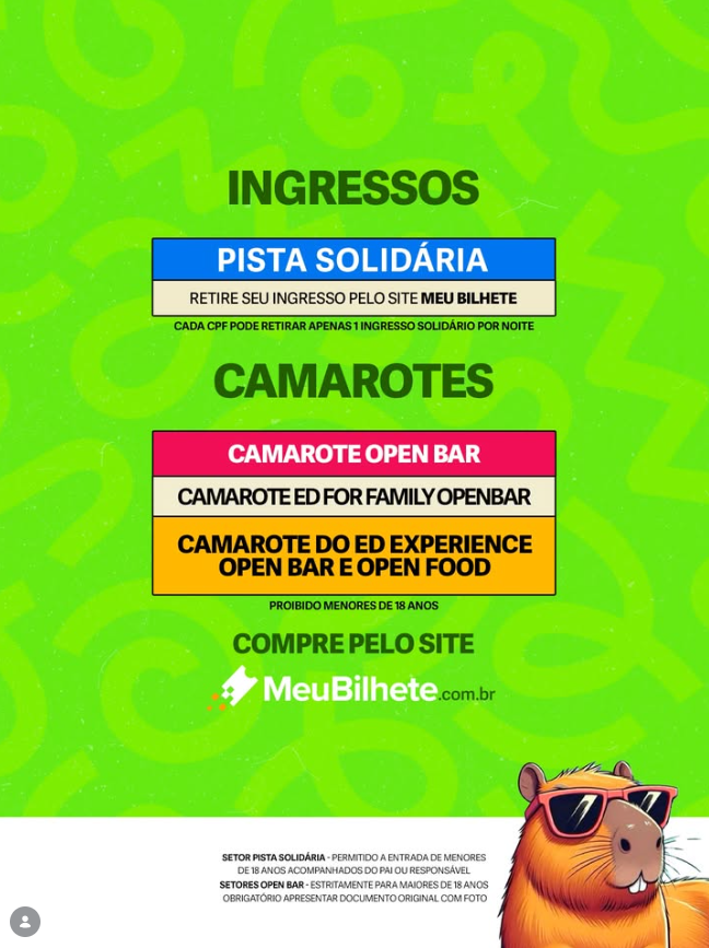 - Camarote do Ed Experience tem acesso a todos os camarotes e a pista