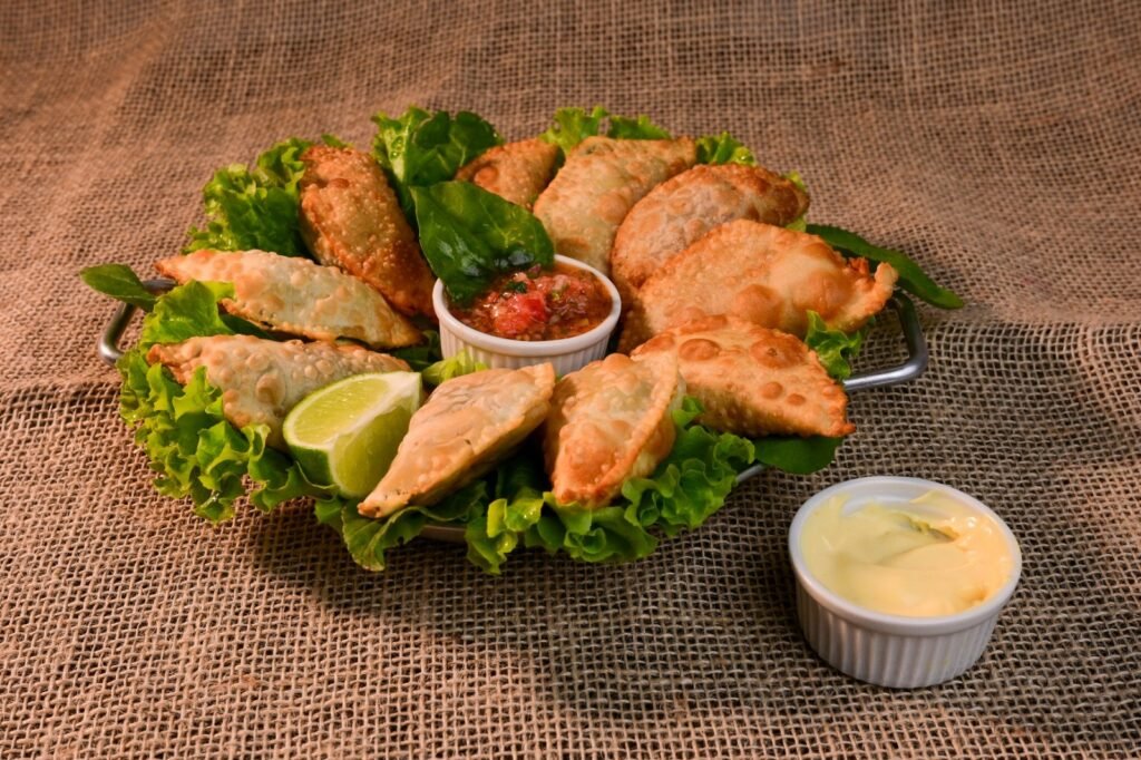 Petisco participante – Pastelzinho de Rúcula (Pastel recheado de Rúcula, Bacon e linguiça caipira. Acompanha vinagrete e molho de mostarda)