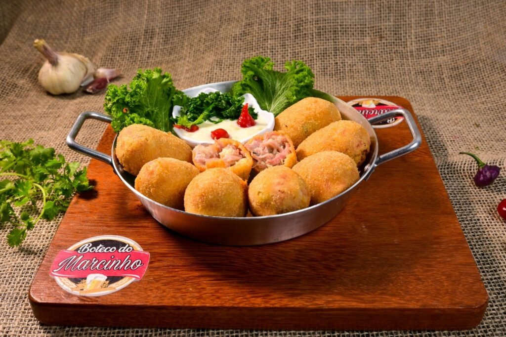 Petisco participante – Carmen Miranda (Coxinhas preparadas com massa de batata e recheio de brócolis, cenoura, bacon crocante, queijos e temperos frescos)