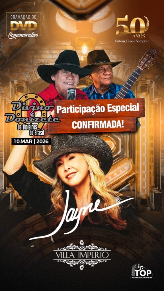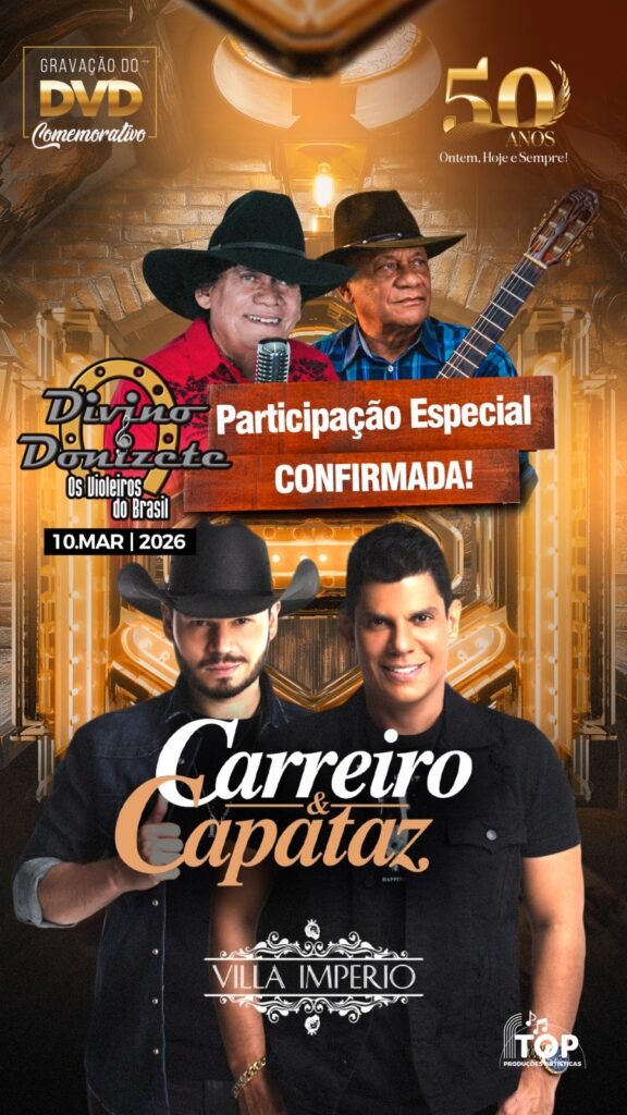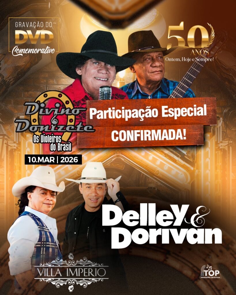 A música sertaneja vai viver um momento histórico em 10 de março de 2026, com a gravação do DVD comemorativo de 50 anos de carreira de Divino & Donizete, um dos duetos mais respeitados e consagrados da música raiz brasileira.