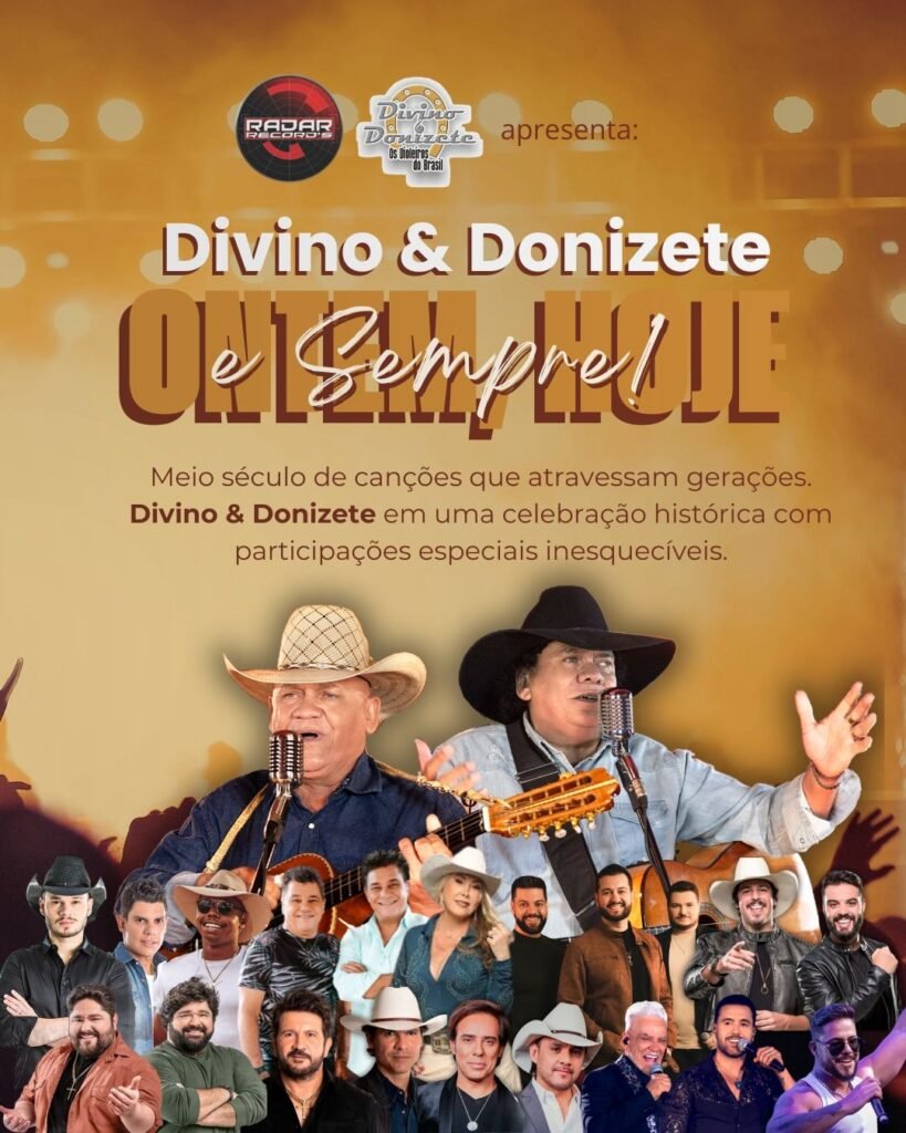 A gravação do DVD “Divino & Donizete – 50 Anos | Ontem, Hoje e Sempre” promete entrar para a história da música sertaneja, reunindo tradição, emoção e grandes encontros em uma noite inesquecível.