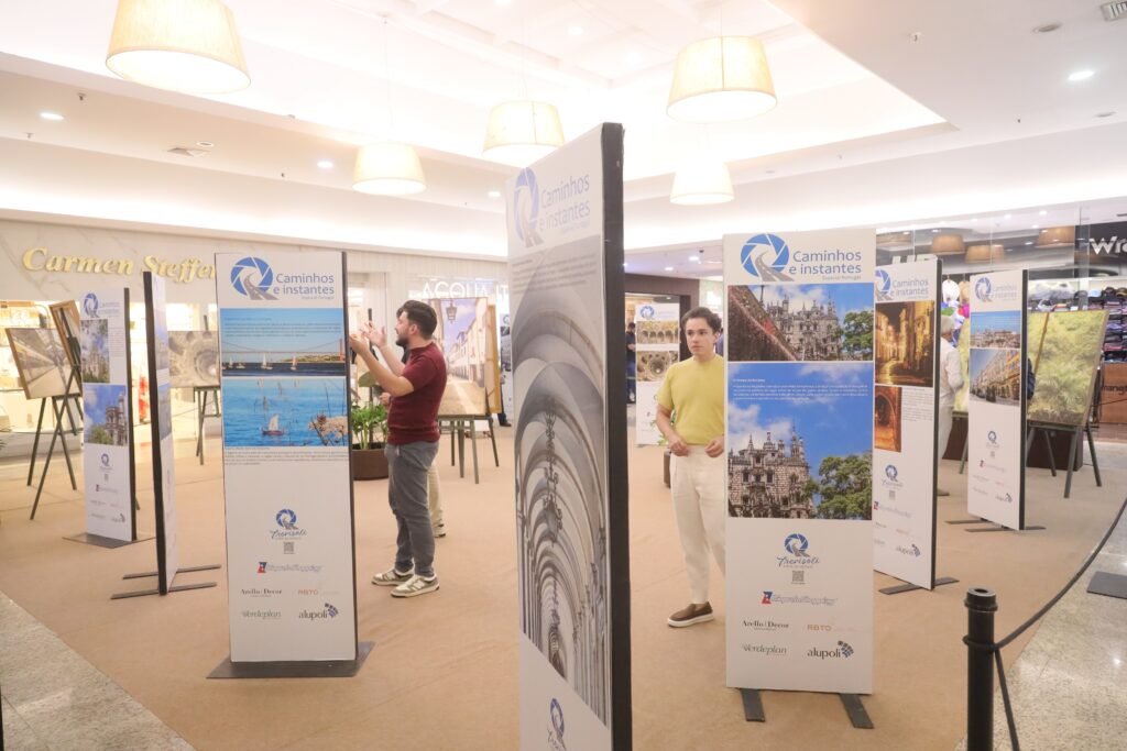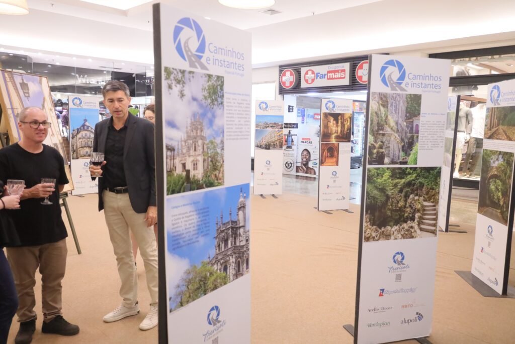 Assinada pelo fotoclubista Emerson Trevisoli, a exposição apresenta registros de locais emblemáticos portugueses, como a Estação de São Bento, a Quinta da Regaleira, o Castelo de Óbidos, o Mercado do Bolhão, além de paisagens do Rio Douro e cenários históricos de Lisboa e Sintra.