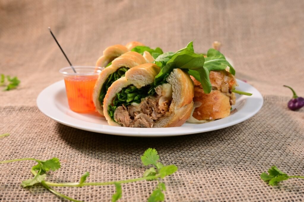 Petisco participante – Boquinha de anjo (Sanduíche no pão de baguete, com rúcula, molho vinagrete e pernil desfiado acebolado)