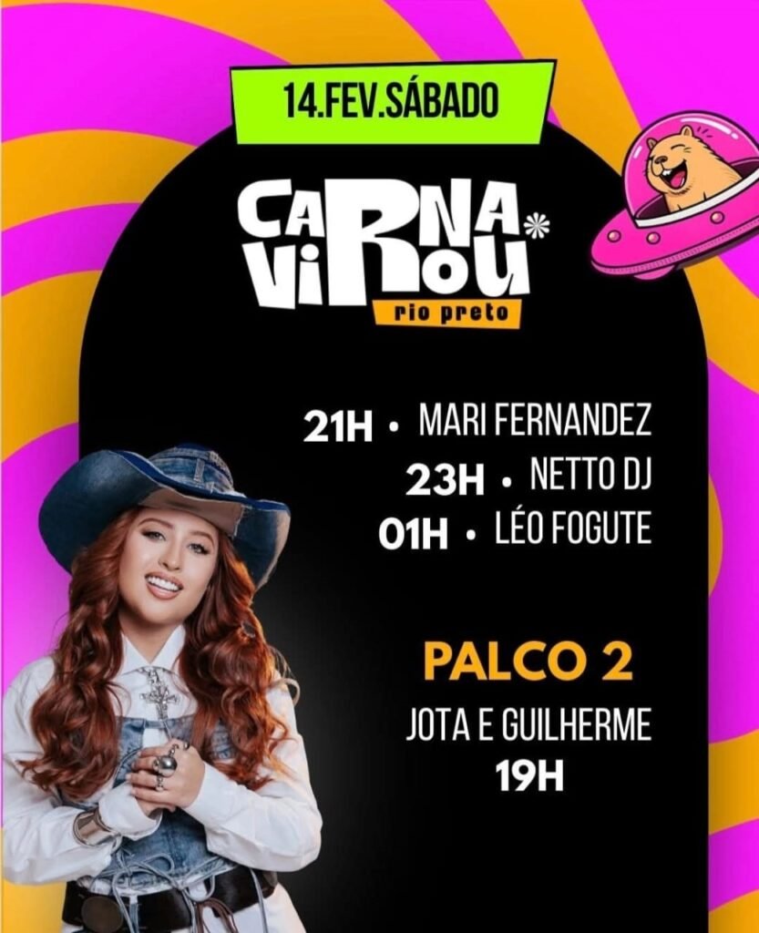 Novas atrações foram anunciadas nesta segunda-feira, 9/2, para o CarnaVirou, que começa na sexta-feira, 13/2, no Recinto de Exposições Alberto Bertelli Lucatto, com abertura de portões prevista para as 18h30 (confira a grade de programação abaixo).
