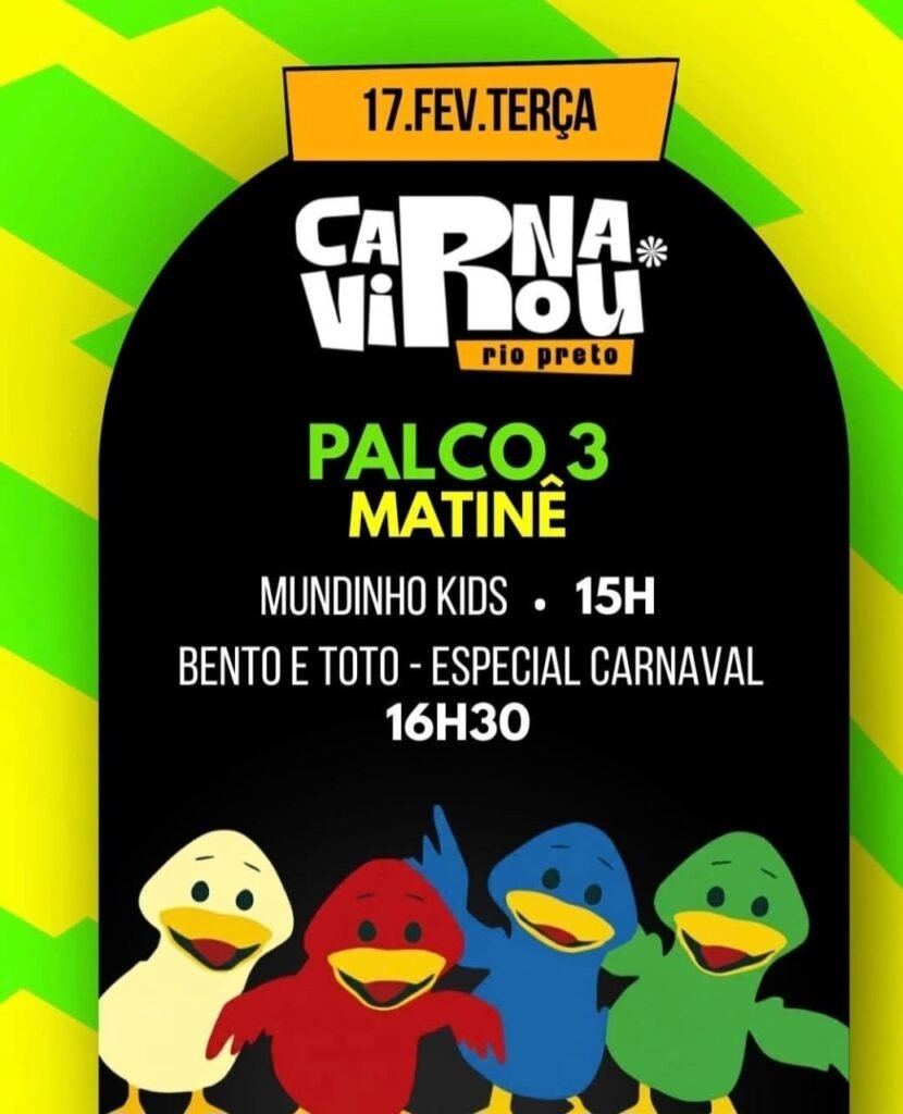 No dia 17/2, terça-feira, a festa começa mais cedo, com a matinê a partir das 15h, no Palco Matinê. Para este dia, também é preciso apresentar ingresso e levar um quilo de alimento não perecível. À noite, o CarnaVirou recebe as irmãs Maiara e Maraísa e o grupo Maestria do Samba, além de Romualdo Simas.