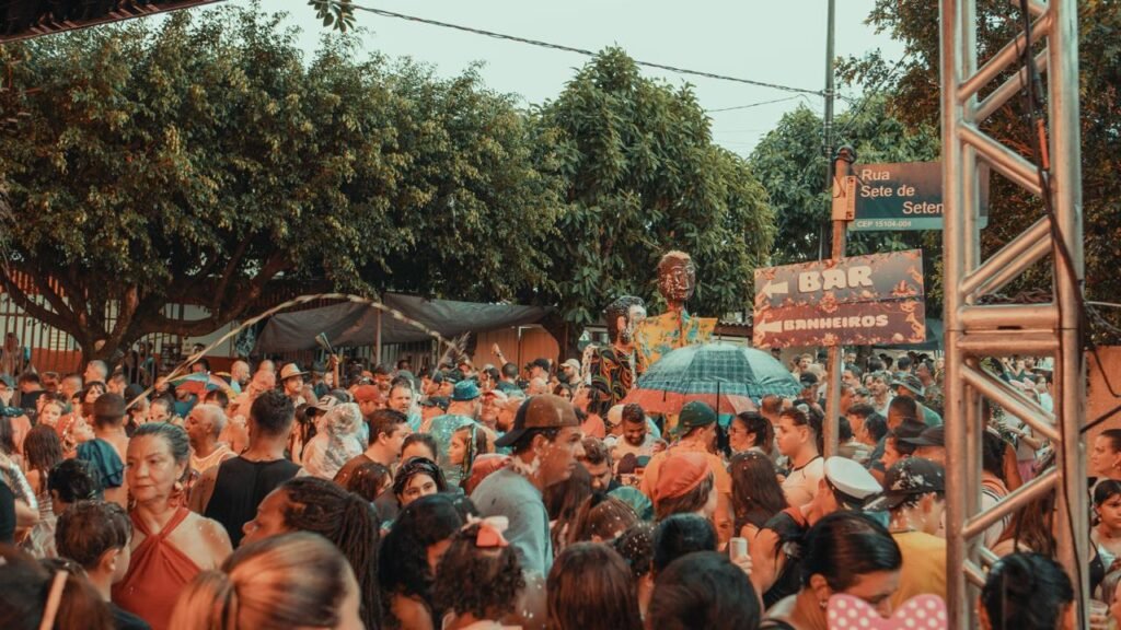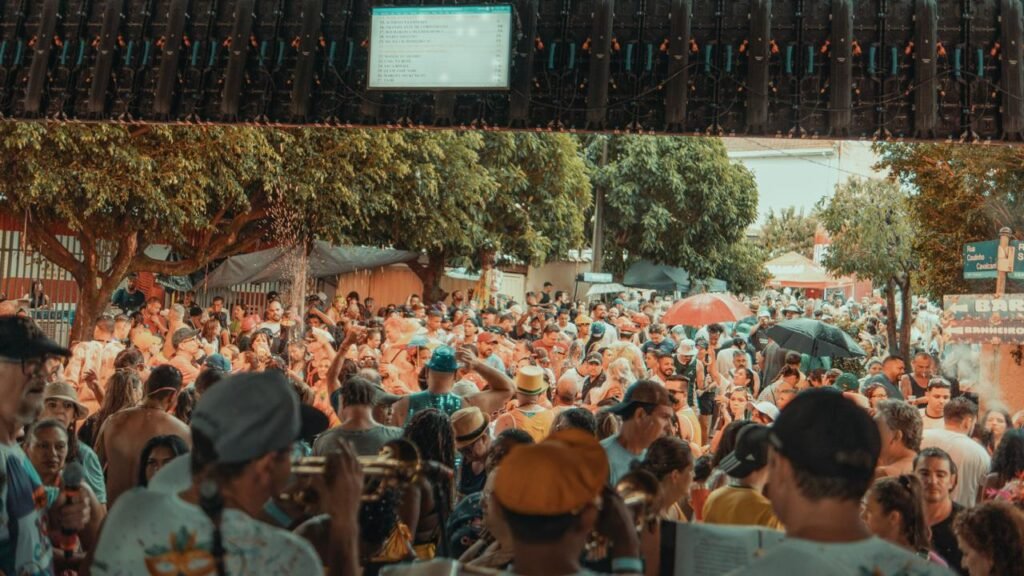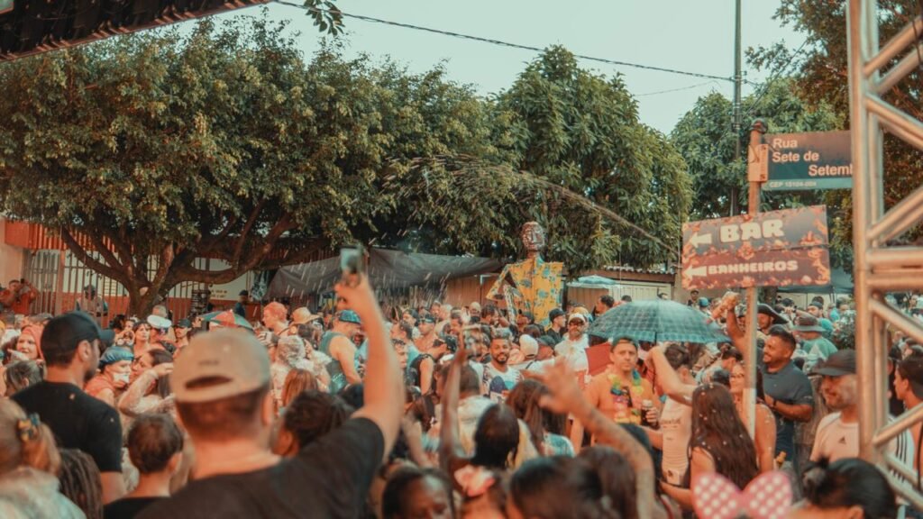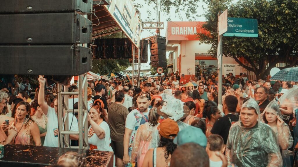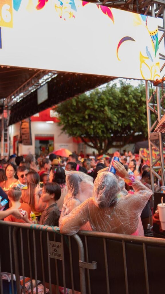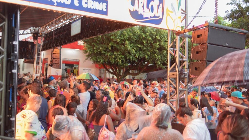Energia: A festa foi descrita como um “mar de gente” com música alta, marchinhas e muita animação, ignorando o tempo chuvoso.