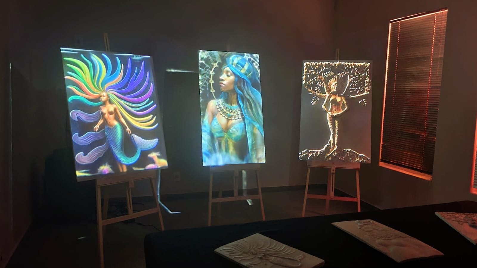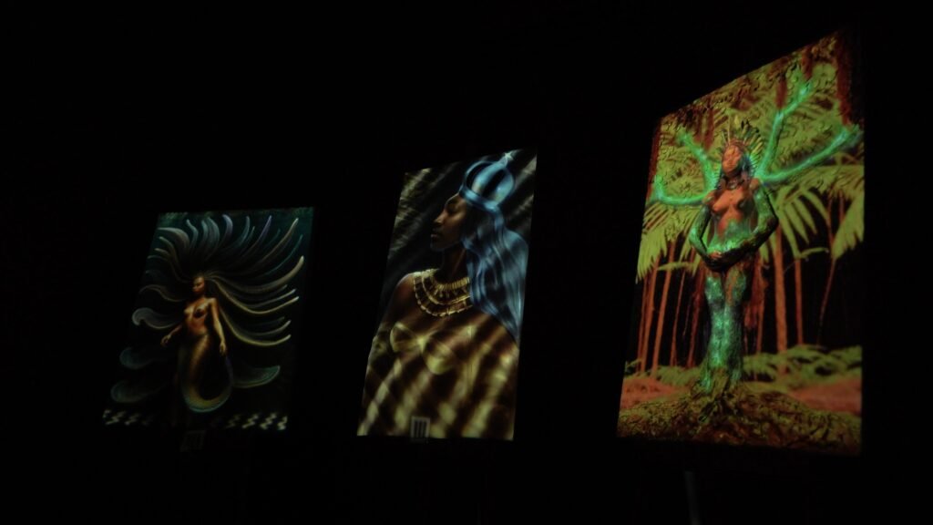 Segundo ela, a utilização de animações e projeções atua como um recurso complementar, pensado para expandir a pesquisa sobre o sagrado feminino e criar novas possibilidades de leitura simbólica das obras.