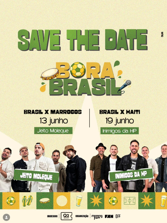 Pode separar a camisa, chamar a galera e aquecer a torcida. ⚽🎤💚💛 O Bora Brasil tá chegando pra transformar os jogos da Copa em uma experiência pra viver, vibrar e compartilhar do jeito que esse momento merece. E pode ter certeza: você vai querer estar lá. Save the date.