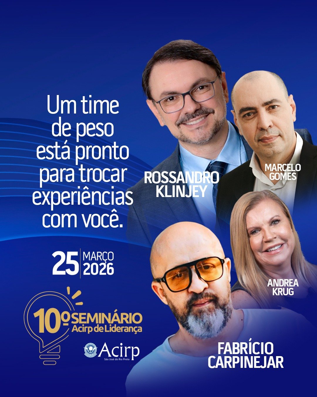 A programação contará com palestrantes como Rossandro Klinjey, Fabrício Carpinejar, Andrea Krug e Marcelo Gomes. O 10º Seminário Acirp de Liderança será realizado no Auditório da Acirp. As inscrições estão disponíveis pela internet, na plataforma Sympla.