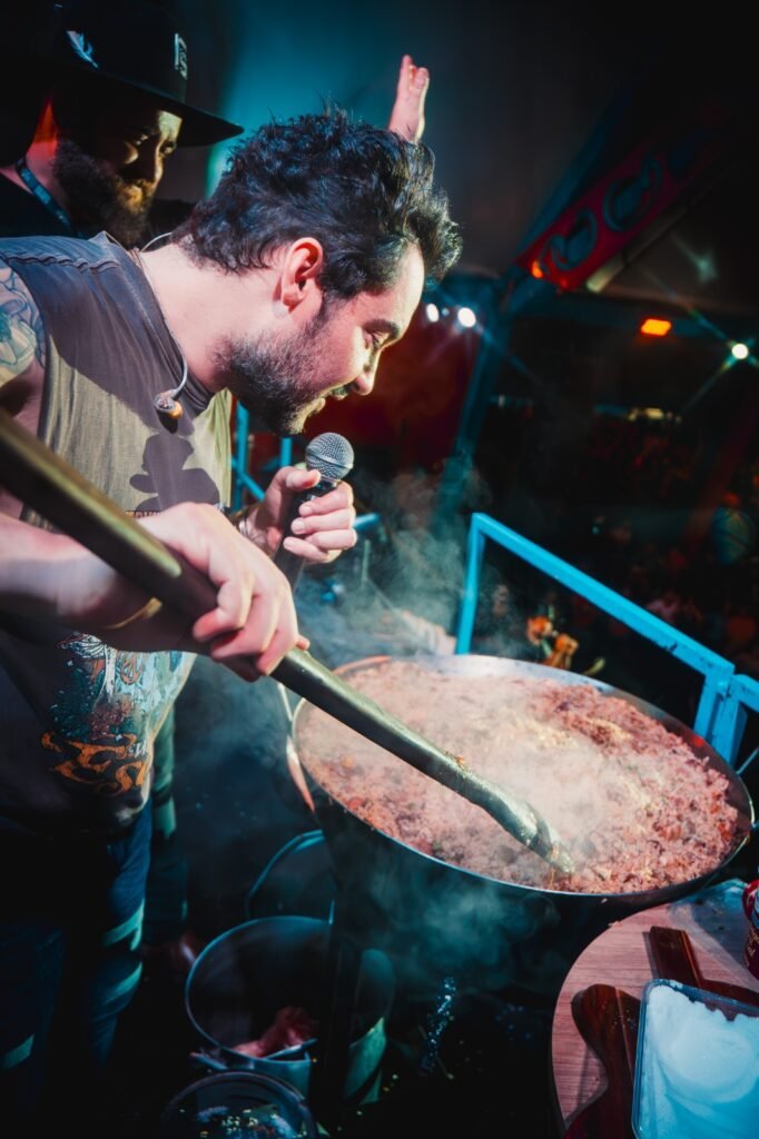Outro destaque da edição foi a Máquina do Churrasco, carreta gourmet criada exclusivamente para o festival, que centraliza parte da operação gastronômica e se transforma em elemento cenográfico e de palco durante o evento. A estrutura abriga diferentes estações de preparo e se tornou um dos principais símbolos do projeto.
